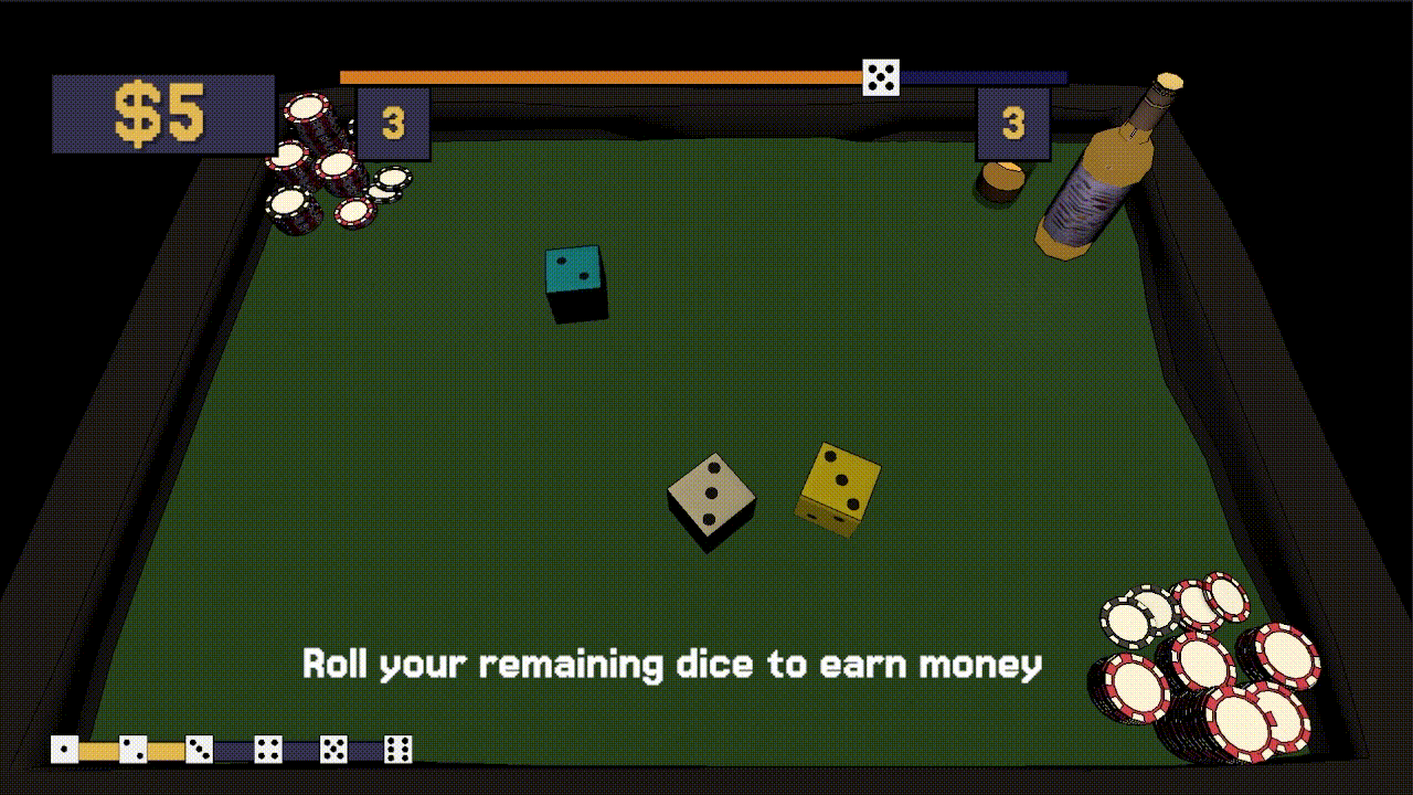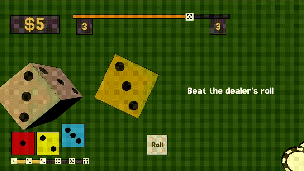 Out-roll the dealer to progress.